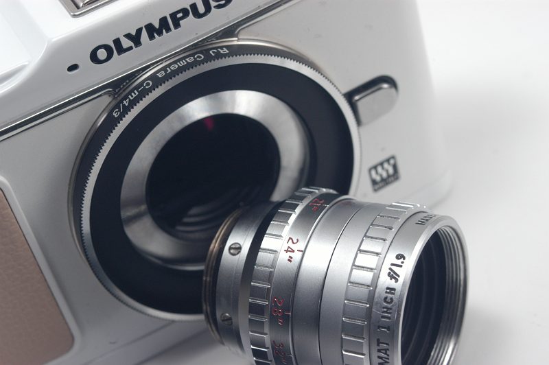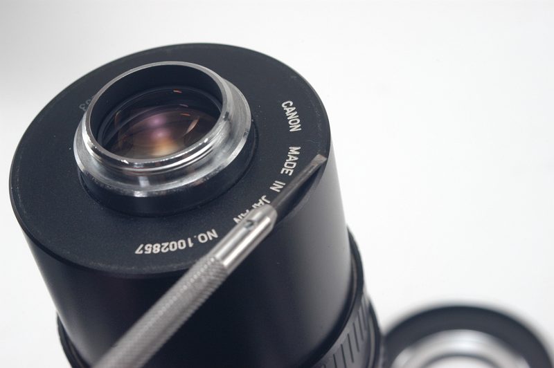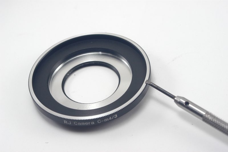 よく見るとアダプタの高くなっている淵の部分がレンズ後ろに当たっていて奥まで締め込めない様子です。