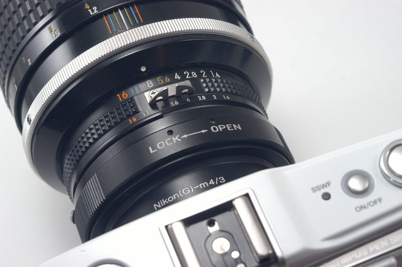 また、鏡銅に絞りリングを持たないGレンズの絞りを動かすことが出来ます。指標がないので、絞り量は目安になります。