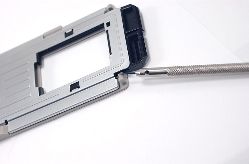 スライドマウントのを挟みこむキャリアにFH-3を挟みこむわけですが、邪魔な出っ張りがあるので加工します。