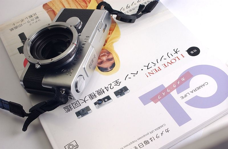 オリンパス・ペンFボディ−EOS/EFブリッジアダプタです。