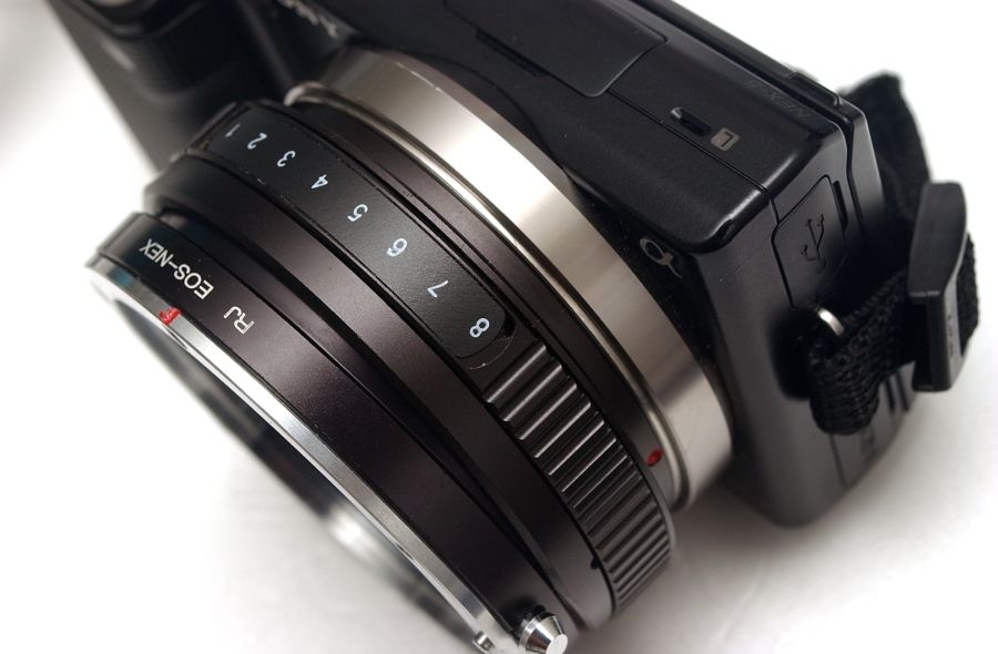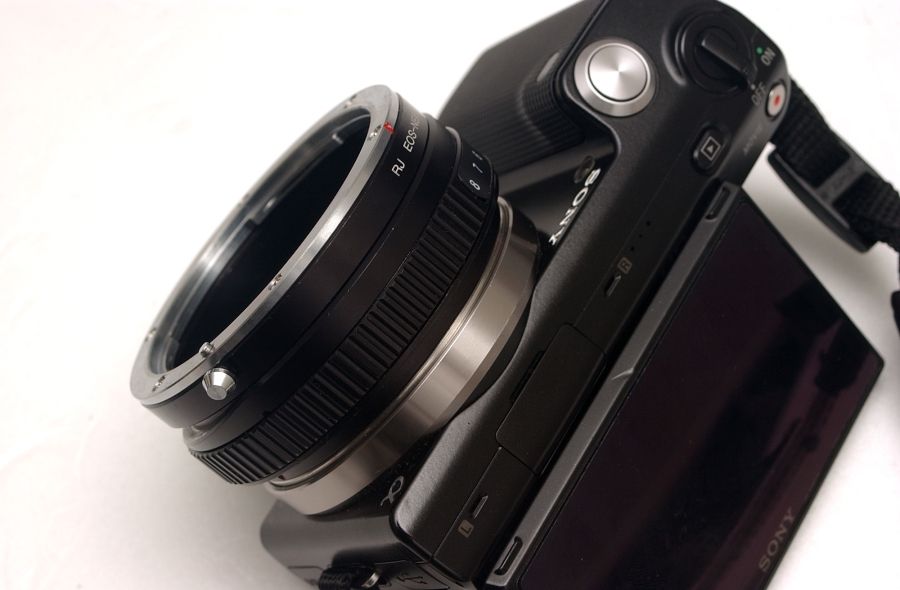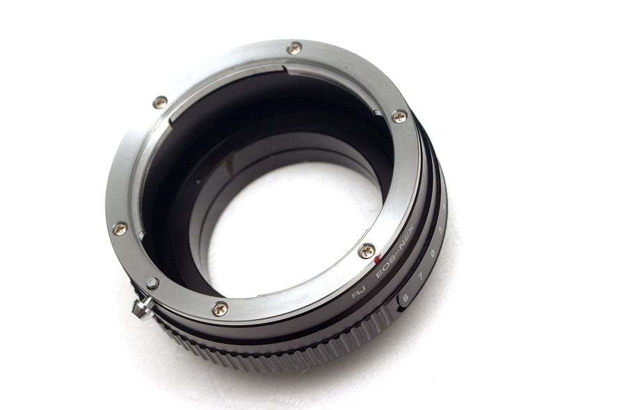 ソニーEマウントにEOS用のアダプターをセットして、