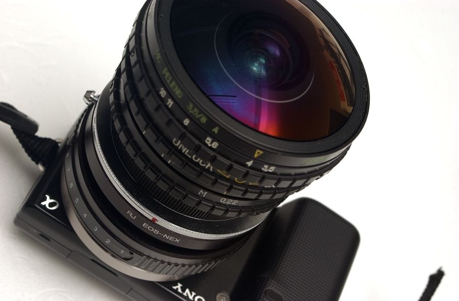 ↑NEX−EOSティルトブリッジアダプター+EOS-M42アダプター+PELENG 8mmf3.5