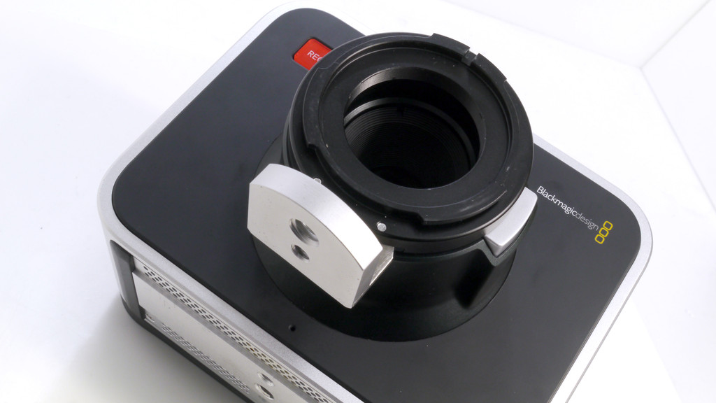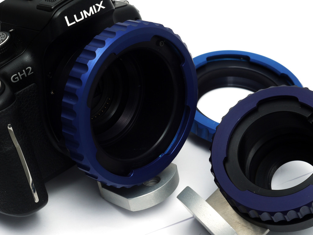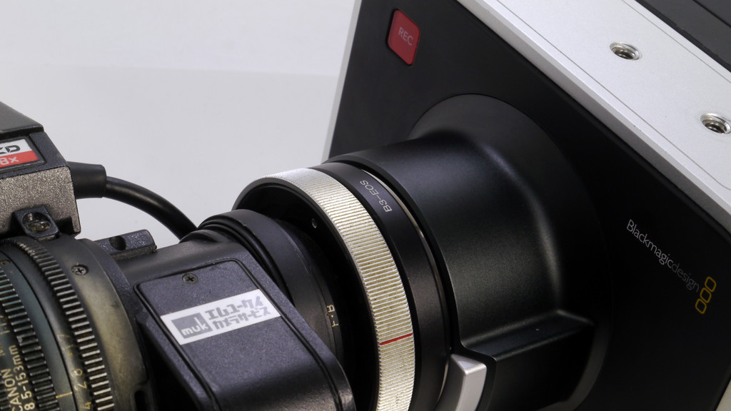 ↓BMPCC+アンジェニューズーム10x12用1.2倍補正レンズ搭載改造アダプター試作