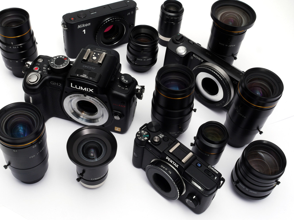 ミラーレスカメラ4機種とアダプタを揃えます。