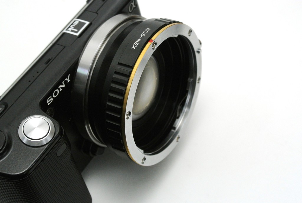 ソニーNEXに装着しEOSマウントに変換するアダプタです。