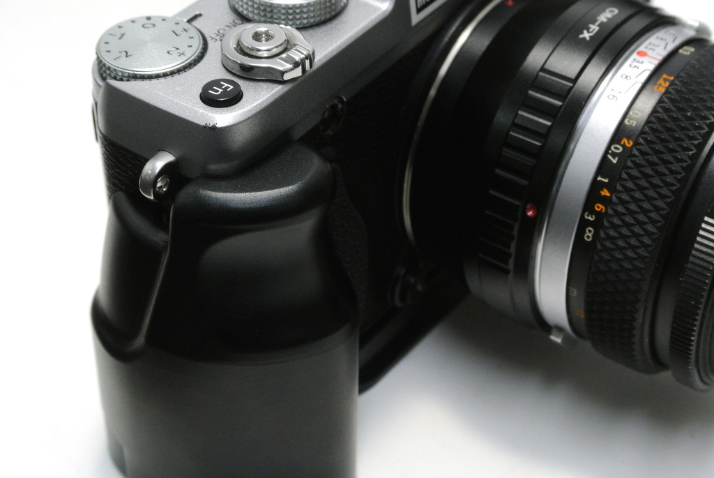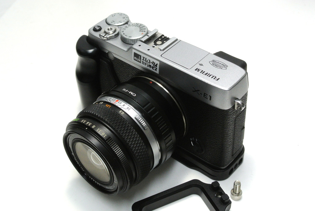 アルカスイス式互換のクイックリリース・グリップ付きL型プレートです。フジX-E1,E2専用です。