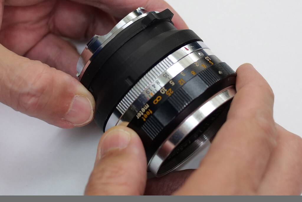 ライカMマウントに、コーワ SET-Rマウントのレンズを装着するアダプター
