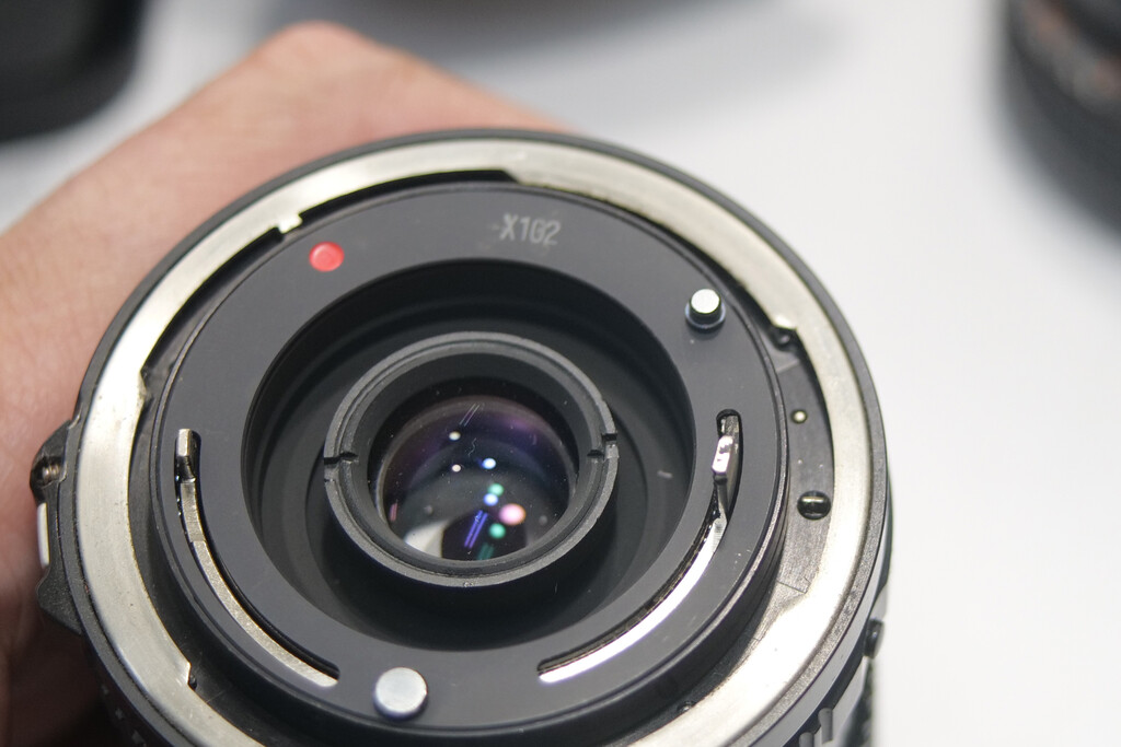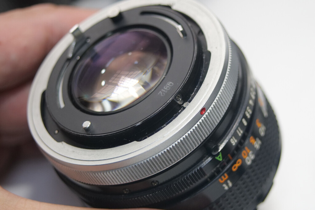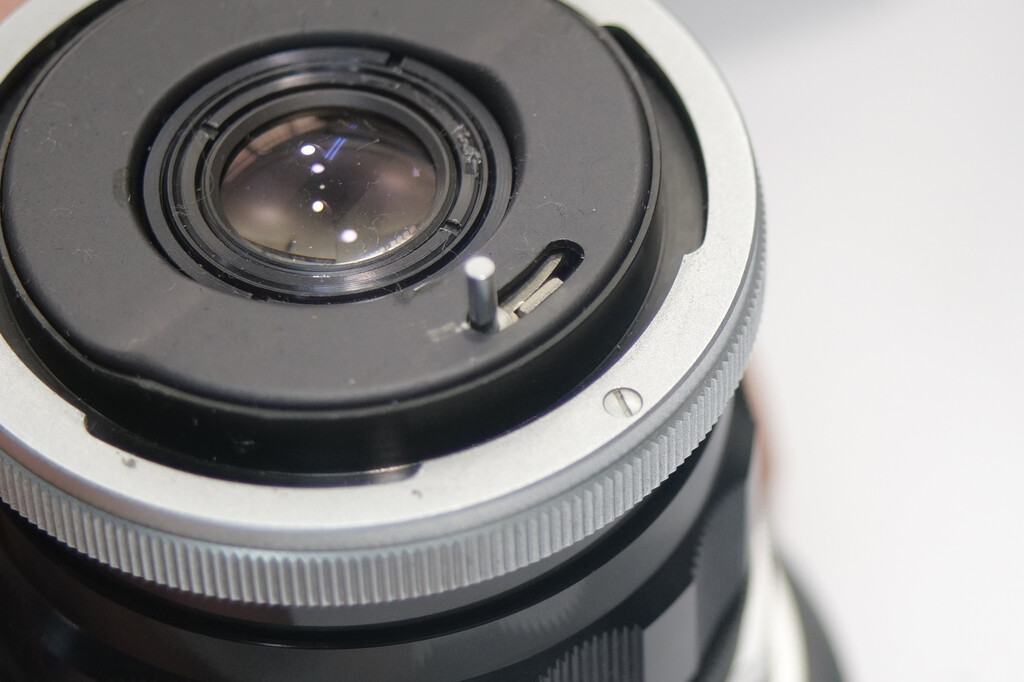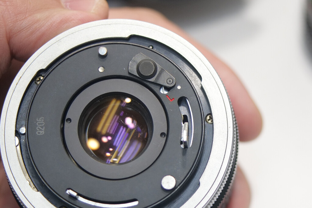 このレンズも、絞りの可動域が少ないです。また普通のミラーのボディに入らないようにマウントの位置決めのピンが長く作られております。