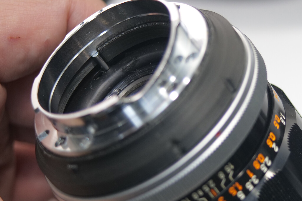 このタイプのレンズで装着出来るようにアダプターを作ると、他のレンズで、絞り連動のレバーを抑え込めず、絞りが途中までしか絞れません。一眼黎明期で仕様がそれほど固まって無いように見えます。当時のボディーでは、レバーを抑え込むレバーにスプリングが効いているのでその差は吸収出来ました。アダプターではそこまでの機構は持てません。