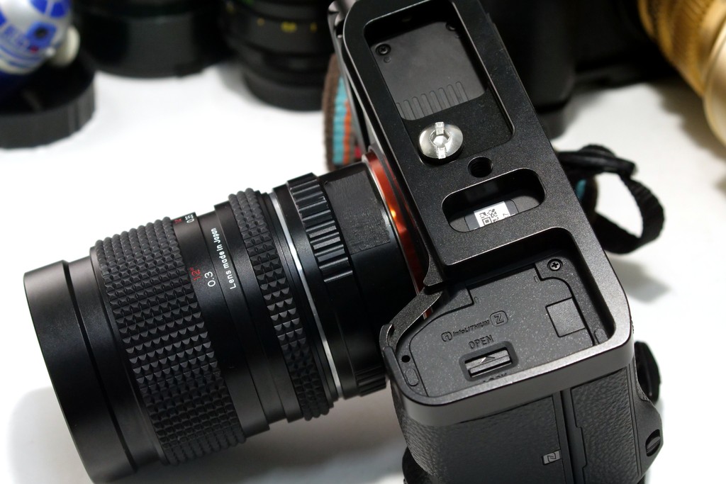 カメラ底面の高さが増し、グリップが握りやすくないます。また、大きいアダプタやレンズともマッチがよろしいです。