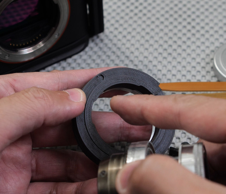 やってみれば出来るもので、アダプターの胴体を貫通させて、レンズのバヨネットを直接抑え込むように工夫しました。