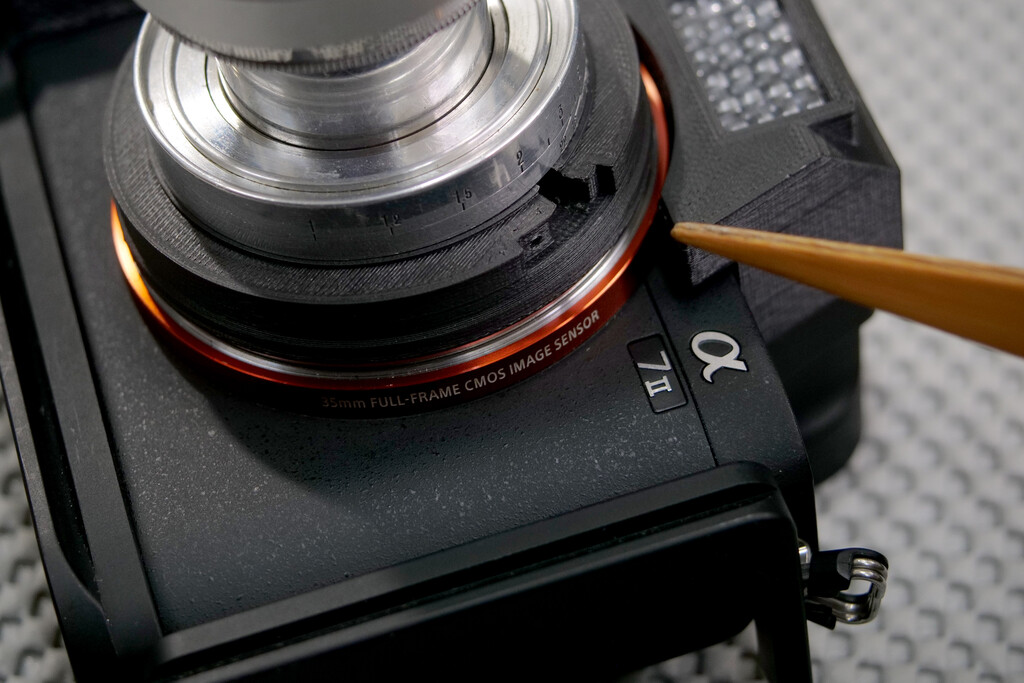 EOSRの金属バヨネットの部品をご用意出来ないので、作れないとお話したところ、お客さんが部品をご用意いただき、レンズとカメラも貸していただけました。同時にソニーEマウント用も作る事が出来てこのページを用意することが出来ました。