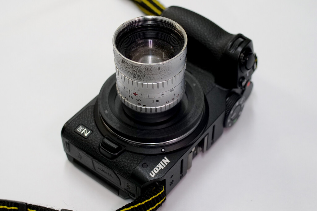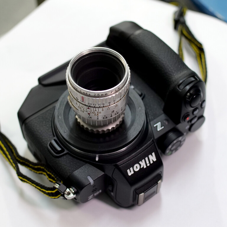 ↑ニコンZ50IIとKOWA 工業用のCマウントレンズ(フォーサーズ対応)35/2。