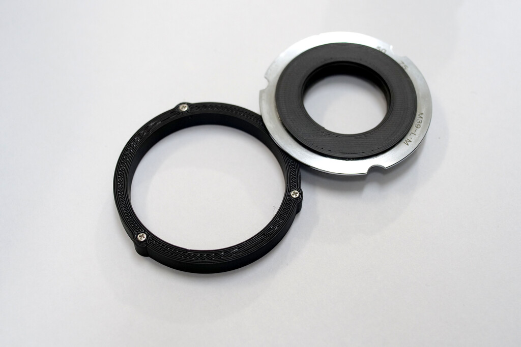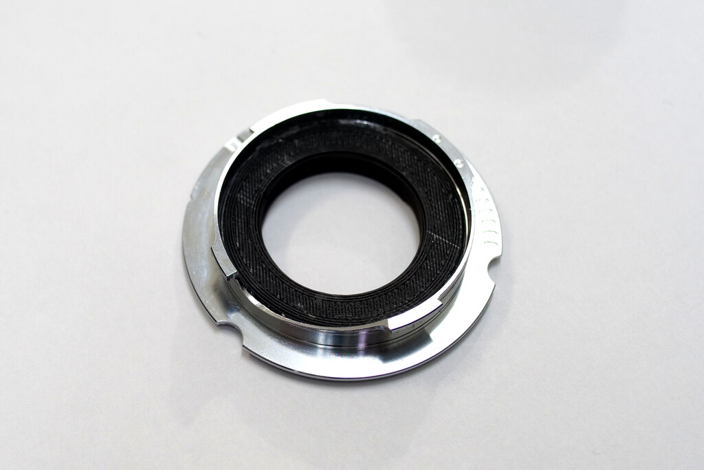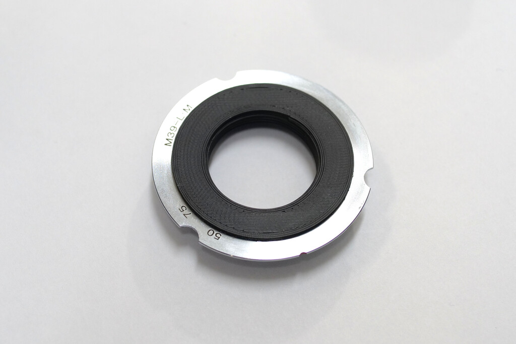 アダプターの厚みは薄いので、いつものMの金属フランジではなく、L-Mリングをベースに作りました。